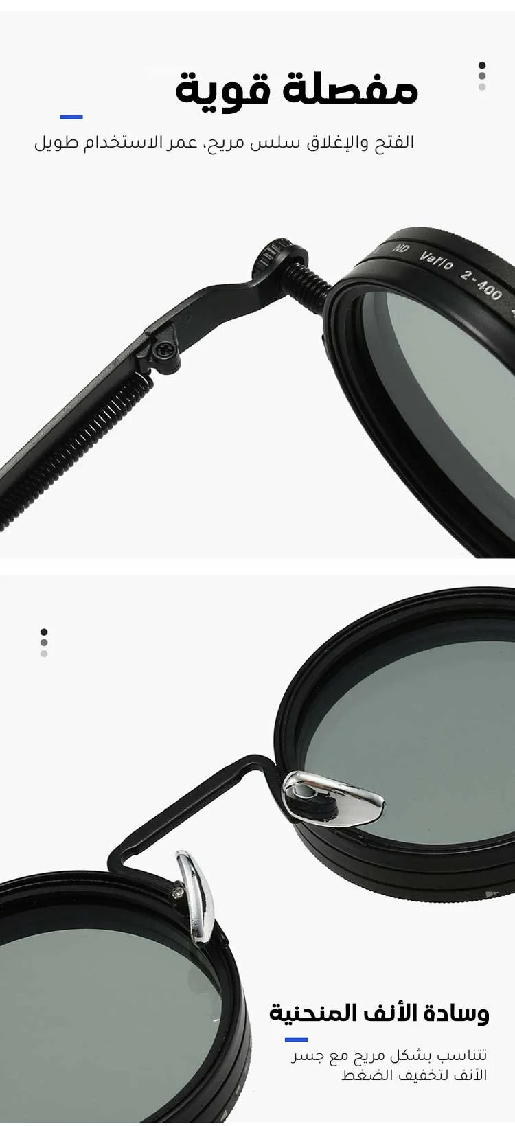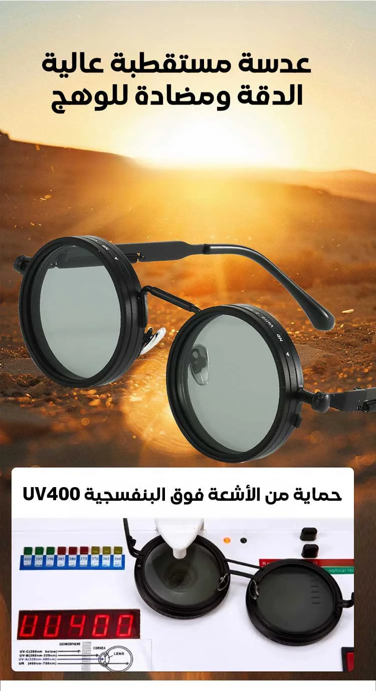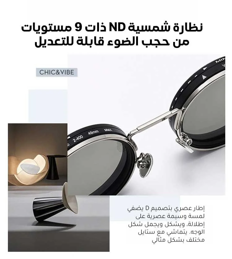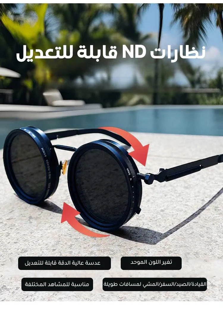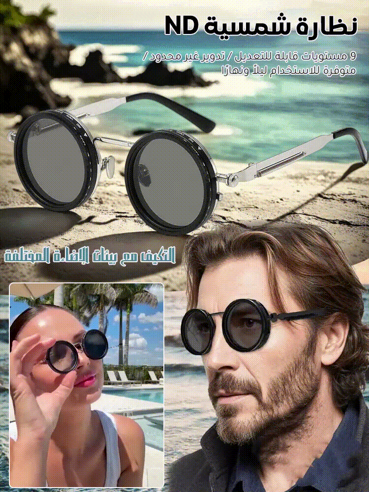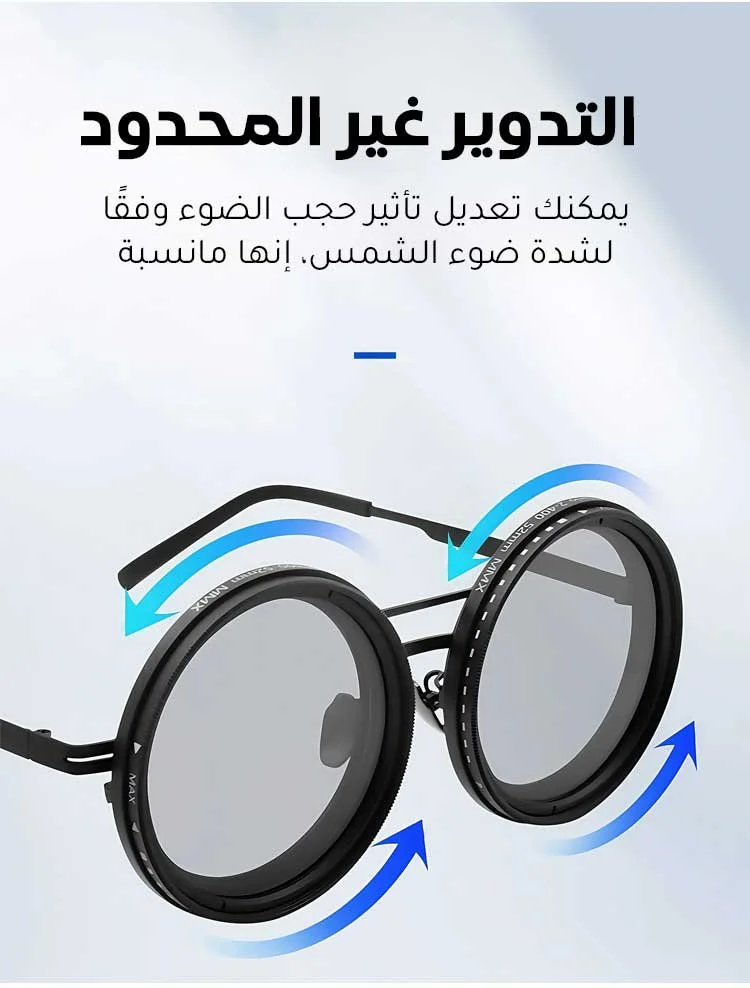 عدسات قابلة للتدوير تمنحك 9 مستويات مختلفة من التعتيم حسب شدة أشعة الشمس.