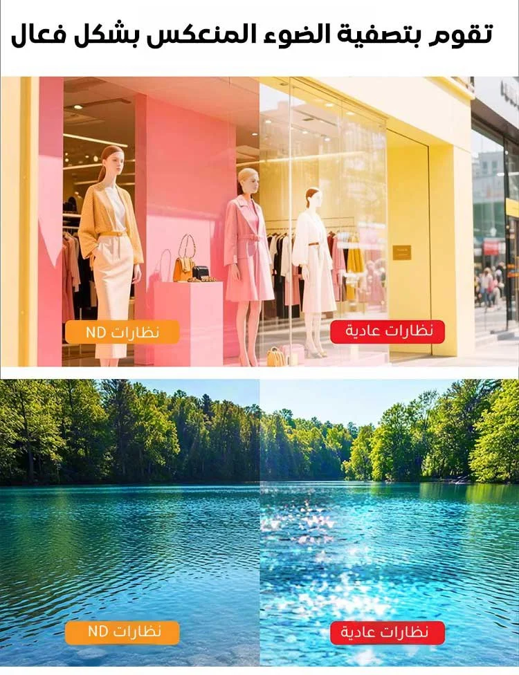 تصفية الضوء المنعكس من الماء والزجاج لراحة عين مثالية.